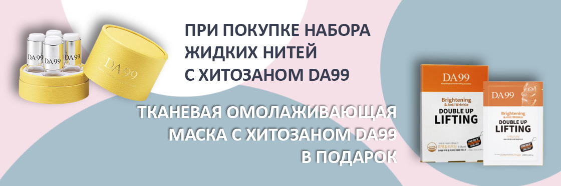 При покупке омолаживающего набора жидких нитей с хитозаном тм DA99 в подарок мы дарим тканевую маску этого же бренда, с таким же эффектом как и сам набор.
